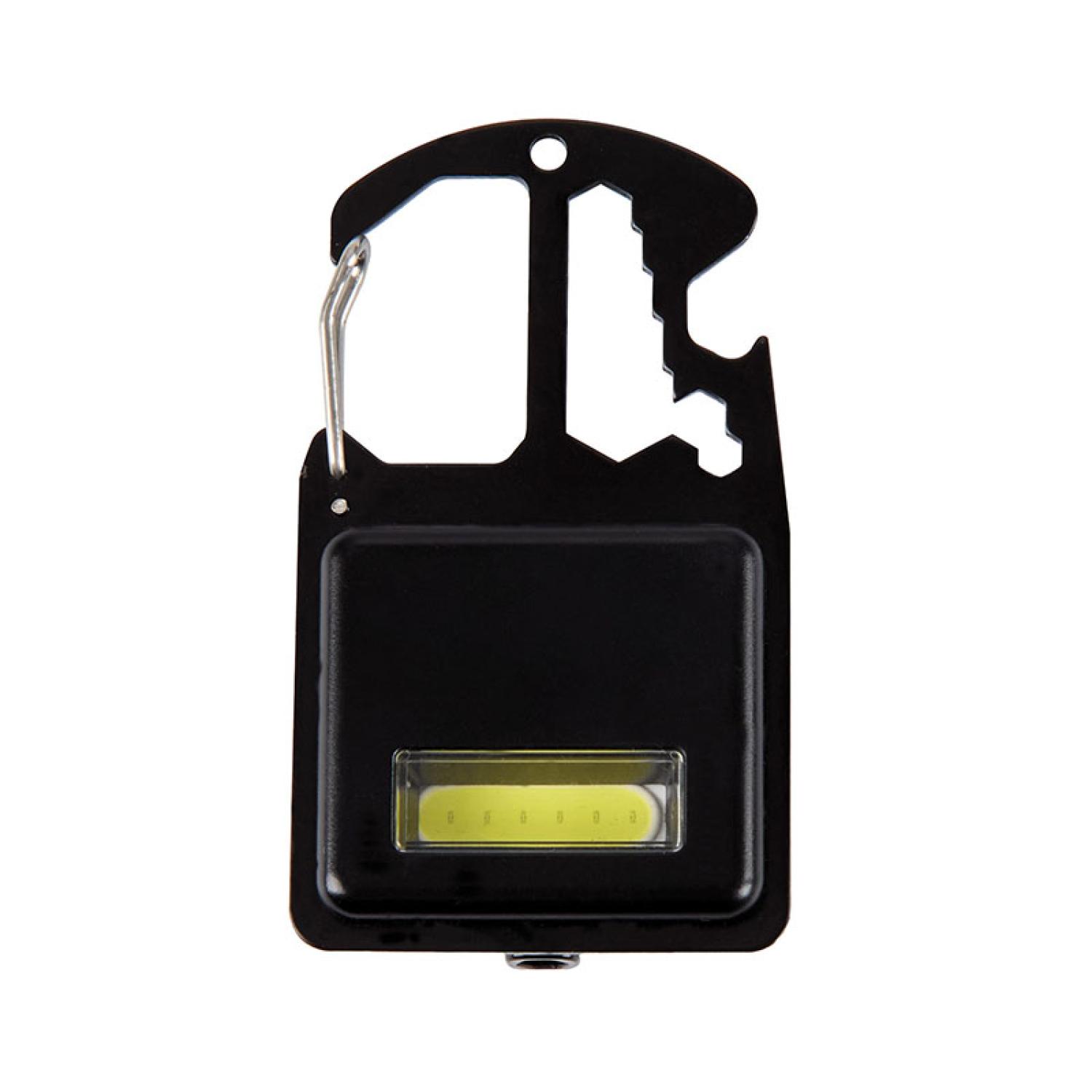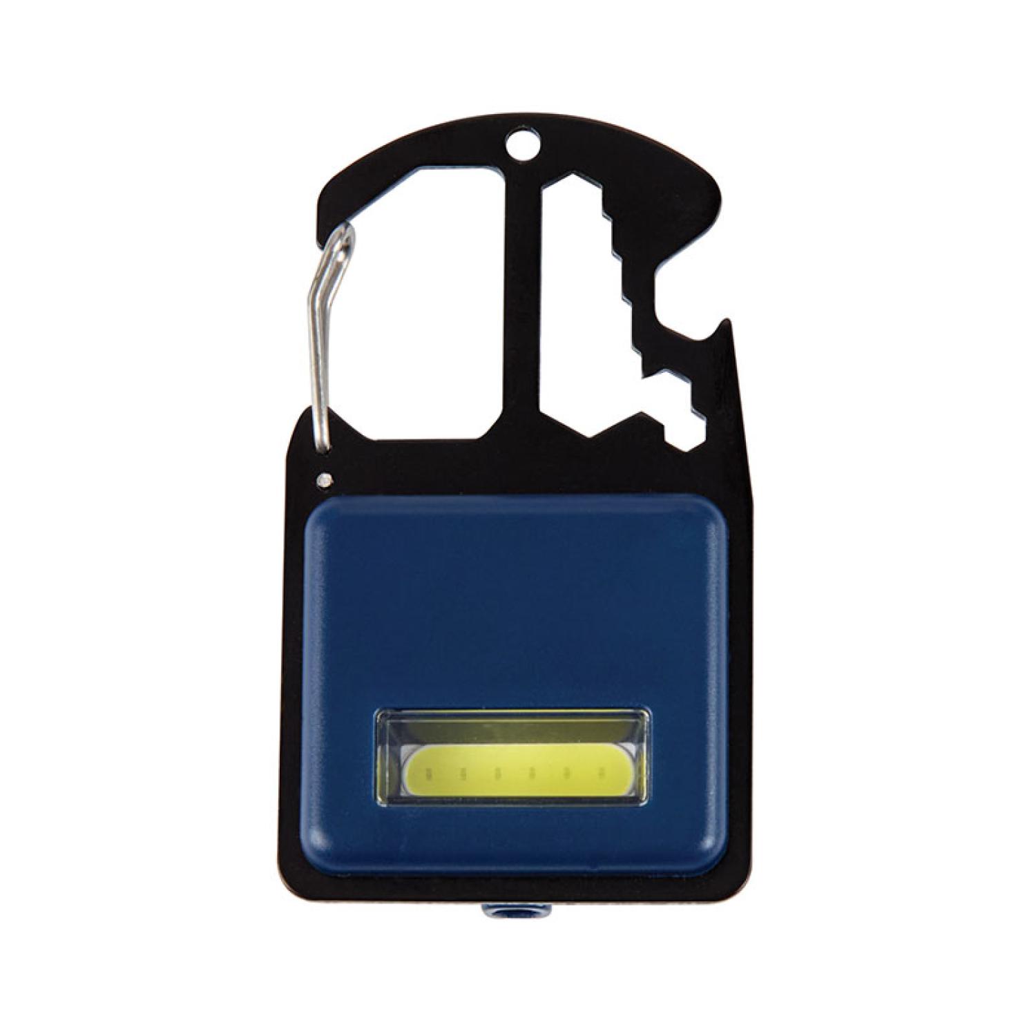 The Bryson Mini Multi-Tool Work Light is a compact yet powerful companion for any adventure or emergency. Featuring a 100-lumen COB light, it provides bright illumination in low-light conditions. Designed for versatility, it also includes flat head and Phillips screwdriver bits conveniently stored in the back, along with hex tools and a bottle opener for added functionality. The built-in magnet attachment allows for hands-free use on metal surfaces, while split ring and dual carabiner spring clip ensures easy portability on a keychain, belt loop, or backpack. Whether you’re camping, tackling outdoor projects, or need a reliable emergency tool, this multi-tool work light is built to perform. Complies with Prop 65. 1 7/8″ W x 3 3/8″ H x 7/8″ D