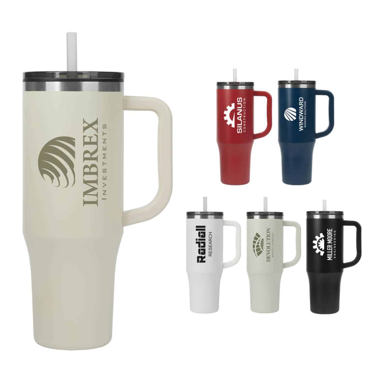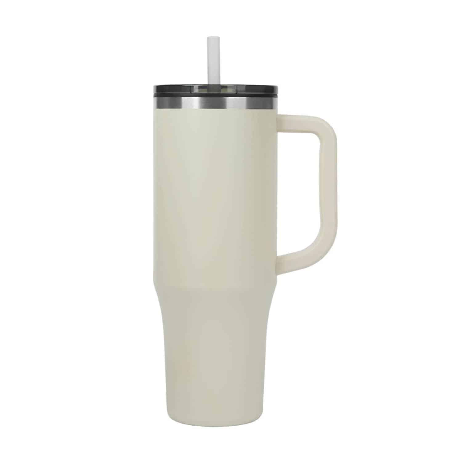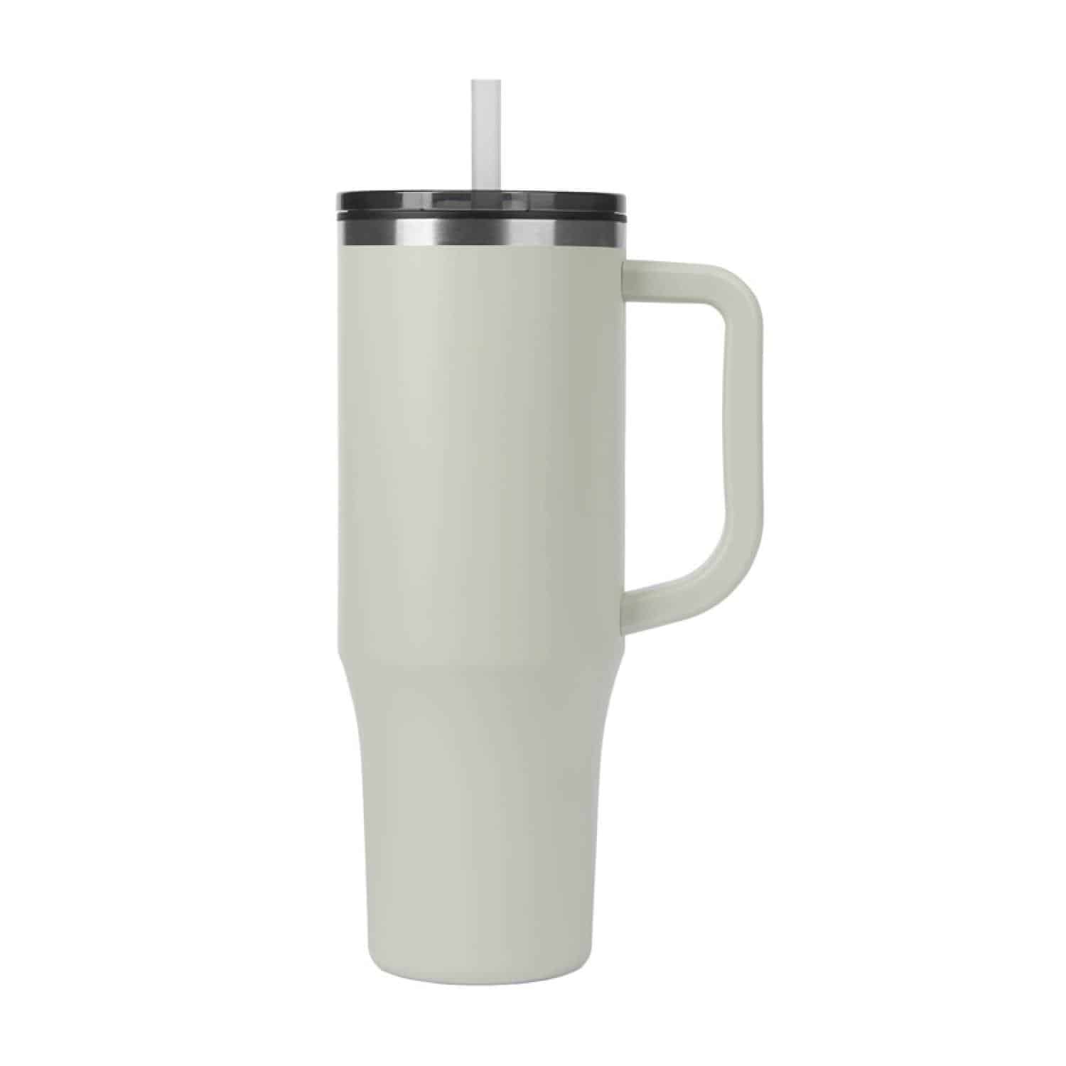 Embark on a journey of sustainability with Emerson 30 oz. Travel Mug, an embodiment of conscious design and environmental responsibility. The outer wall of the mug is made of 90% recycled post-consumer stainless steel and the inner wall is composed of recycled polypropylene, contributing to a reduction in environmental impact without compromising on quality. The push-on lid featuring a slide closure keeps your drink contained and the reusable straw encourages a drinking alternative for your sipping pleasure. Your on-the-go experience is enhanced with its ergonomic handle designed for comfort and convenience, and the mug fits comfortably in most standard car cup holders for easy traveling. The Emerson is also BPA Free and FDA Compliant. Complies with Prop 65. 5 1/4″ W x 9 1/2″ H x 3 3/4″ D