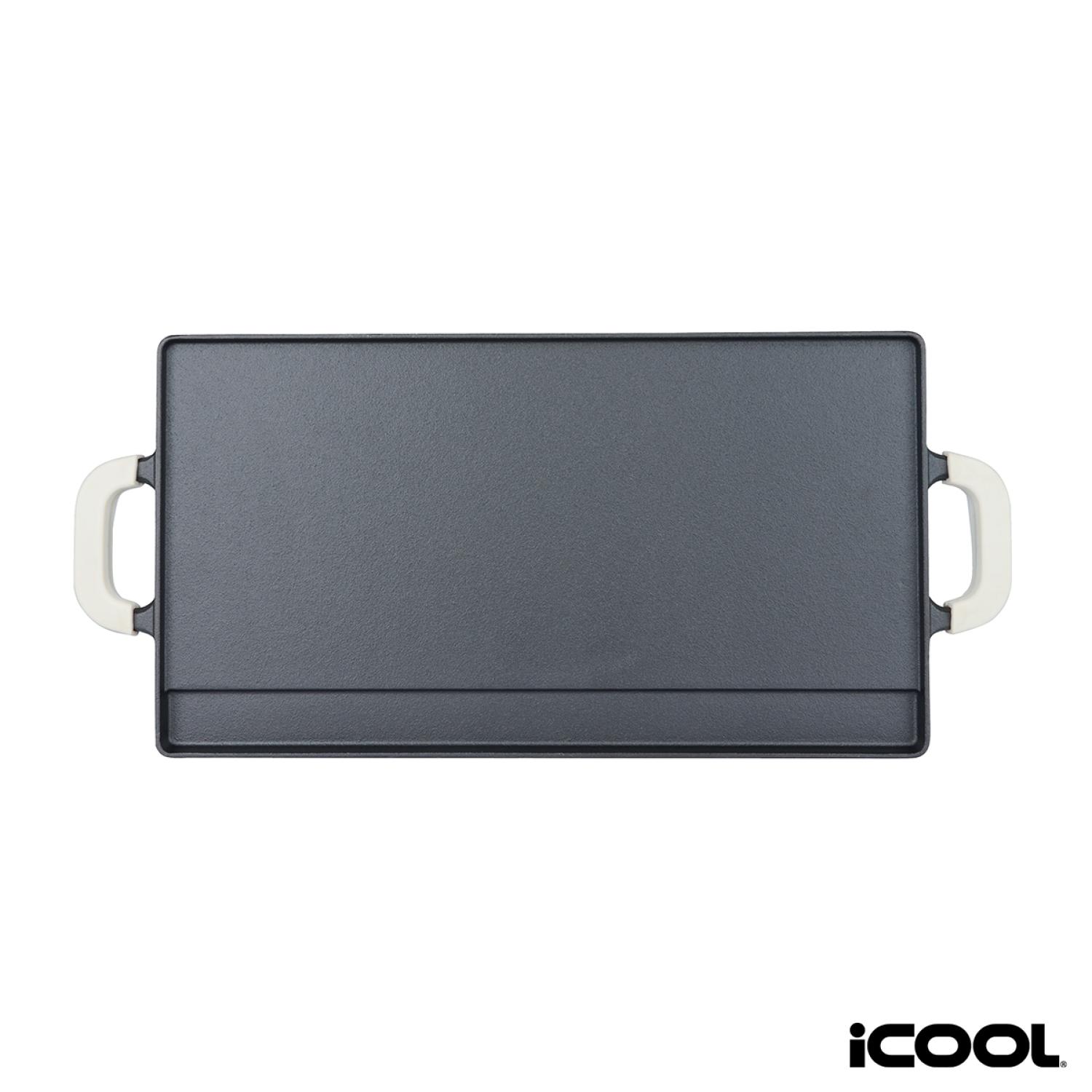 Cook with ease using the iCOOL Banff Reversible Cast Iron Griddle. Featuring both flat and ribbed sides, this griddle is perfect for searing, grilling, and sauting a wide range of food. The pre-seasoned surface ensures excellent nonstick performance and enhances flavor with every use, while the removable silicone handles provide safe, comfortable handling. With a generous cooking area of 16 1/4 x 7 1/2 inches, it’s large enough for a variety of meal choices, making it an essential addition to any kitchen. A portion of all proceeds is donated to Shelter to Soldier, a non-profit organization that rescues dogs to train as service animals for veterans in need. Complies with Prop 65. 19 3/4″ W x 9 1/4″ H x 5/8″ D