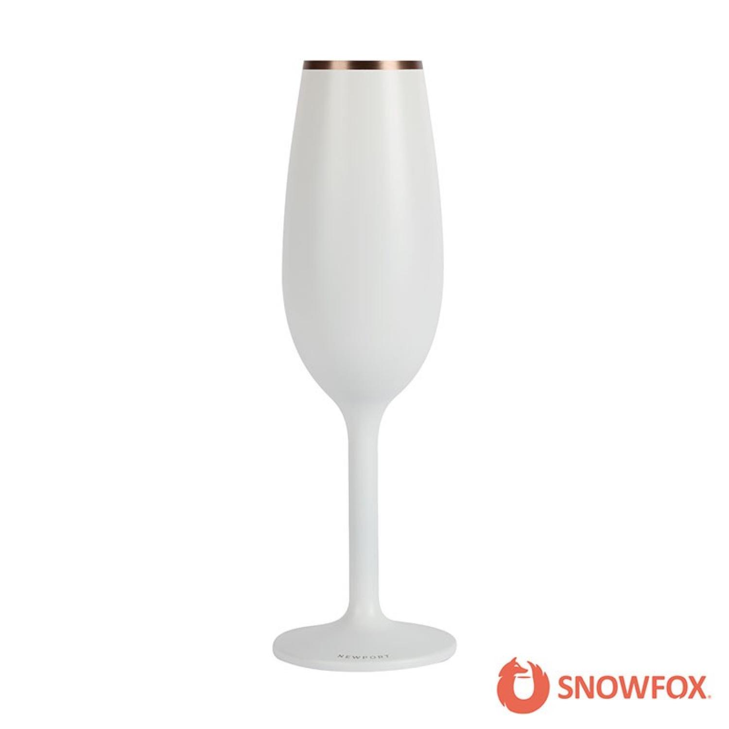 Experience the perfect balance of elegance and performance with the premium insulated champagne flute from Snowfox Newport Collection. Designed to enhance every sip, it features an ultra-thin 1mm rim for a luxurious drinking experience, while its narrow internal wall channels bubbles upward, unlocking the full aroma and flavor of your favorite sparkling wine. Crafted from high-quality 18/8 food-graded stainless steel, this durable, unbreakable flute ensures long-lasting use without compromising taste. A soft silicone base provides added protection against scratches and minimizes slips and spills, making it perfect for everyday enjoyment. Elevate your celebrations with stemware that preserves both the temperature and integrity of your bubbly from the first pour to the last sip. BPA Free and FDA compliant. Complies with Prop 65. 3″ W x 9 3/8″ H x 3″ D
